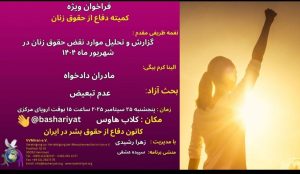 گزارش صوتی جلسه ویژه کمیته دفاع از حقوق زنان در تاریخ ۲۵ سپتامبر ۲۰۲۵