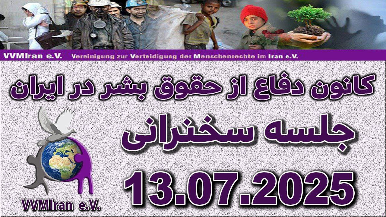جلسه عمومی کانون دفاع از حقوق بشر در ایران در تاریخ ۱۳ جولای ۲۰۲۵ در ساعت ۱۵:۰۰ به وقت اروپای مرکزی با حضور جمعی از فعالان حقوق بشر و دیگر مهمانان، در فضای مجازی زووم با مدیریت خانم ساره استوار برگزار گردید. سخنرانان عبارتند از: ۱)خانم ایراندخت کیا: گزارش و تحلیل موارد نقض حقوق بشر در ایران در خردادماه ۱۴۰۴. ۲)خانم ملیحه ششپری: اساتید دانشگاه های ایران.۳) بحث آزاد: حق مان را فراموش نکنیم حق آگاهی، حق مطالبه گری، حق انتخاب. با مشارکت ؛ آقای رامین احمدزاده، آقای فرجود تقی پور، آقای امیر پالوانه، آقای مازیار پرویزی، خانم زهرا رشیدی، آقای منوچهر شفایی، خانم کوثر ولیزاده.همکارانی که ما را در برگزاری این جلسه یاری کردند: مسئول جلسه: خانم ساره استوار، منشی جلسه: خانم کوثر ولیزاده. ضبطصدا و تدوین: آقای سلمان قربانی، ادمینها: آقای محمود گلستانی.علاقمندان میتوانند گزارش صوتی جلسه فوق را از طریق فایلهای صوتی زیر شنوا باشند.